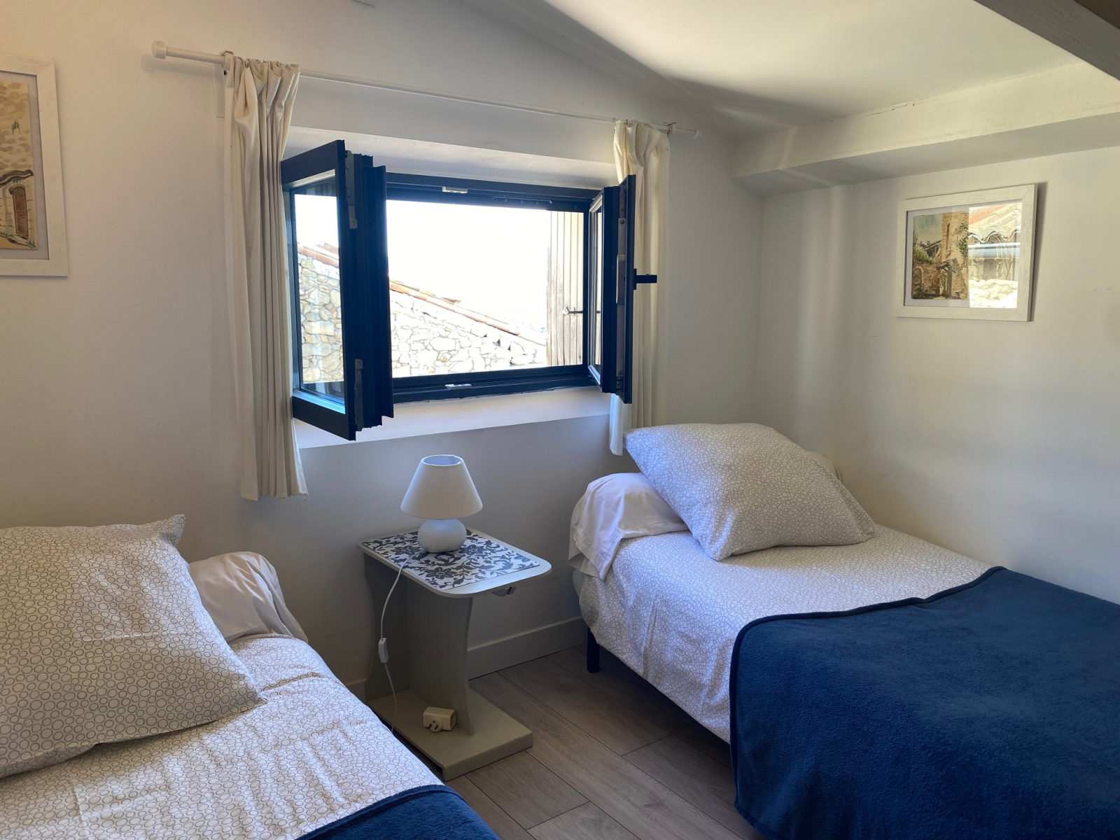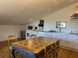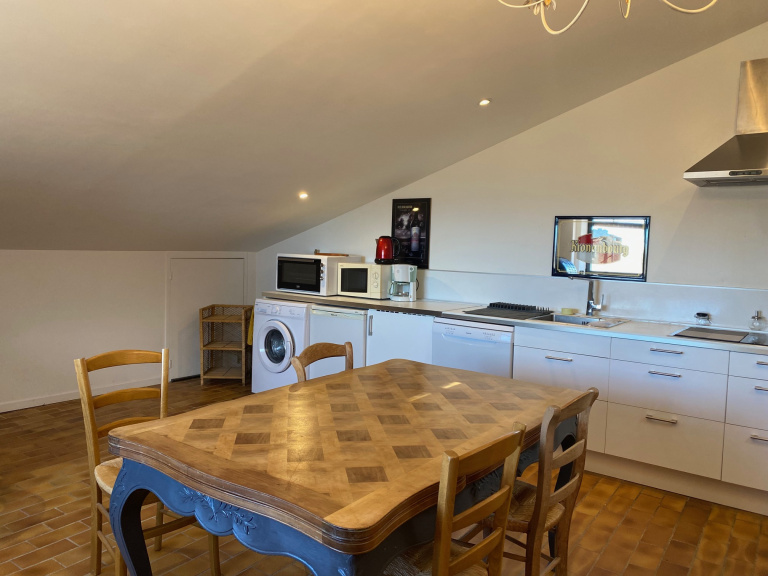 Dès l'entrée on accède à un bel espace constitué d'une cuisine américaine équipée et meublée ouverte sur un séjour salle à manger , un couloir dessert une salle d'eau , wc, un dégagement et deux chambres ( 1 lit double et 2 lits jumeaux )