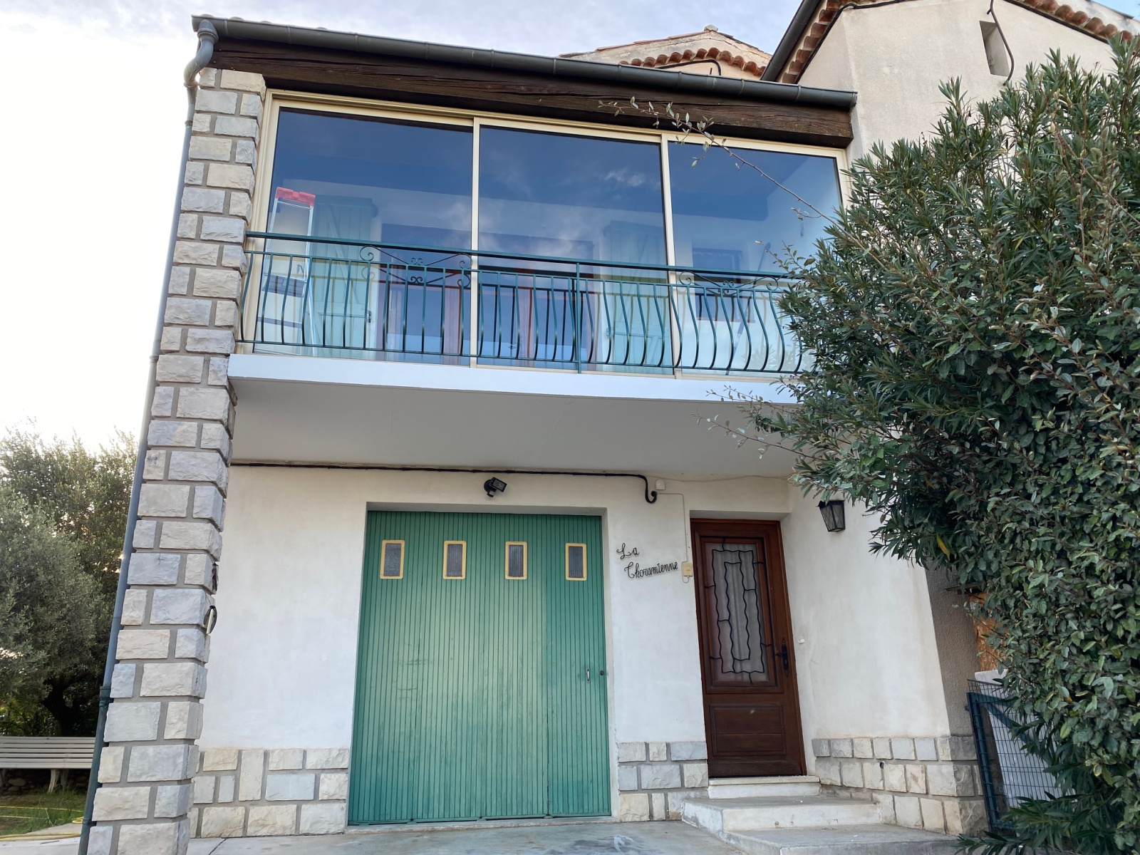 Au premier étage l espace de vie est composé de deux chambres avec grands placards, séjour avec véranda , cuisine équipée four plaque hotte frigo