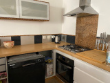 Living, cuisine américaine équipée , à l'étage un wc, une salle d'eau et une chambre avec rangements