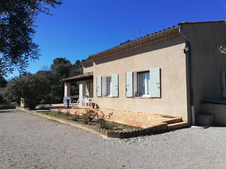 Grand jardin arboré, potager, et terrasse ensoleillée avec vue imprenable sur la vallée. Nombreux oliviers producteurs.