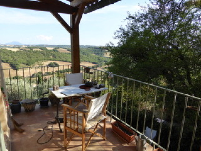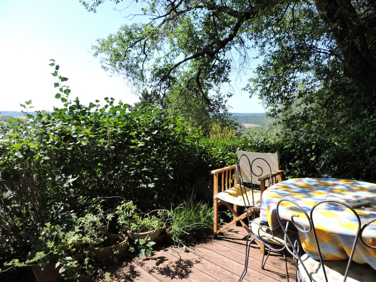 En rez de rue nous accédons à la maison par une terrasse avec vue panoramique sur le plateau de Valensole , et les collines .