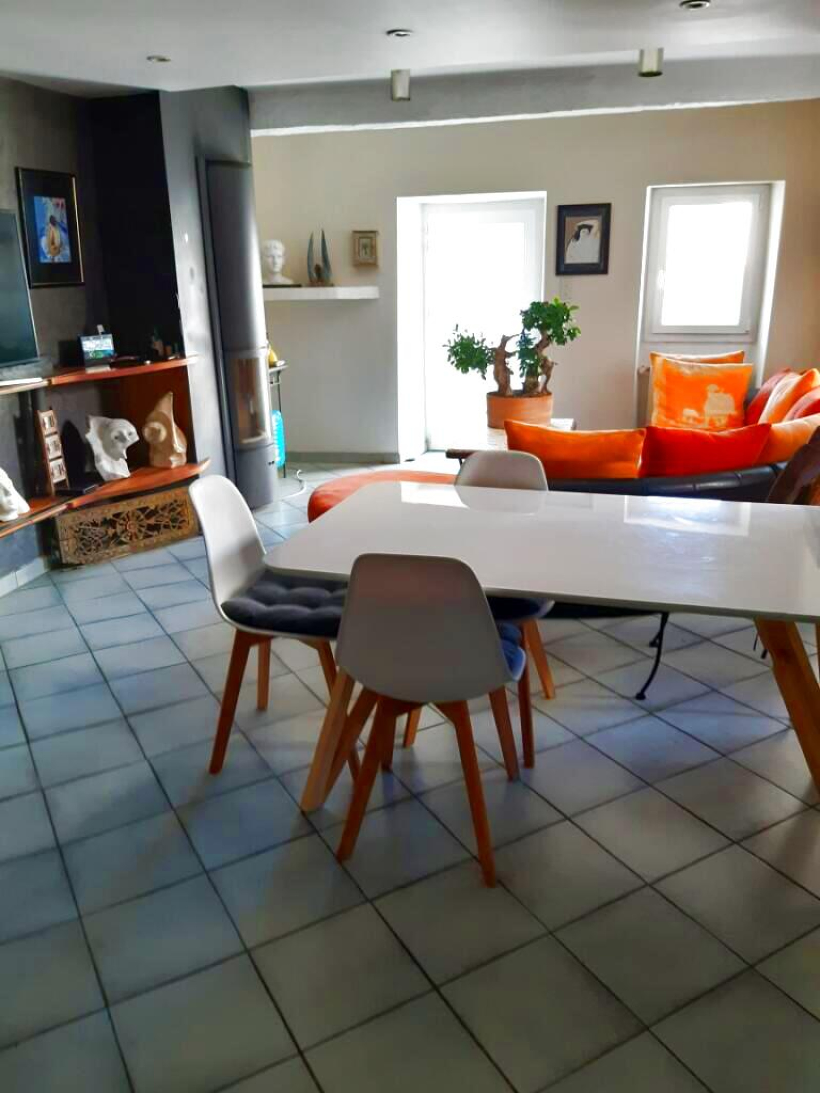 La distribution atypique de la maison en font une maison chaleureuse et familiale pour une vie en village .