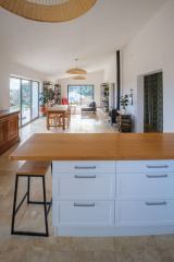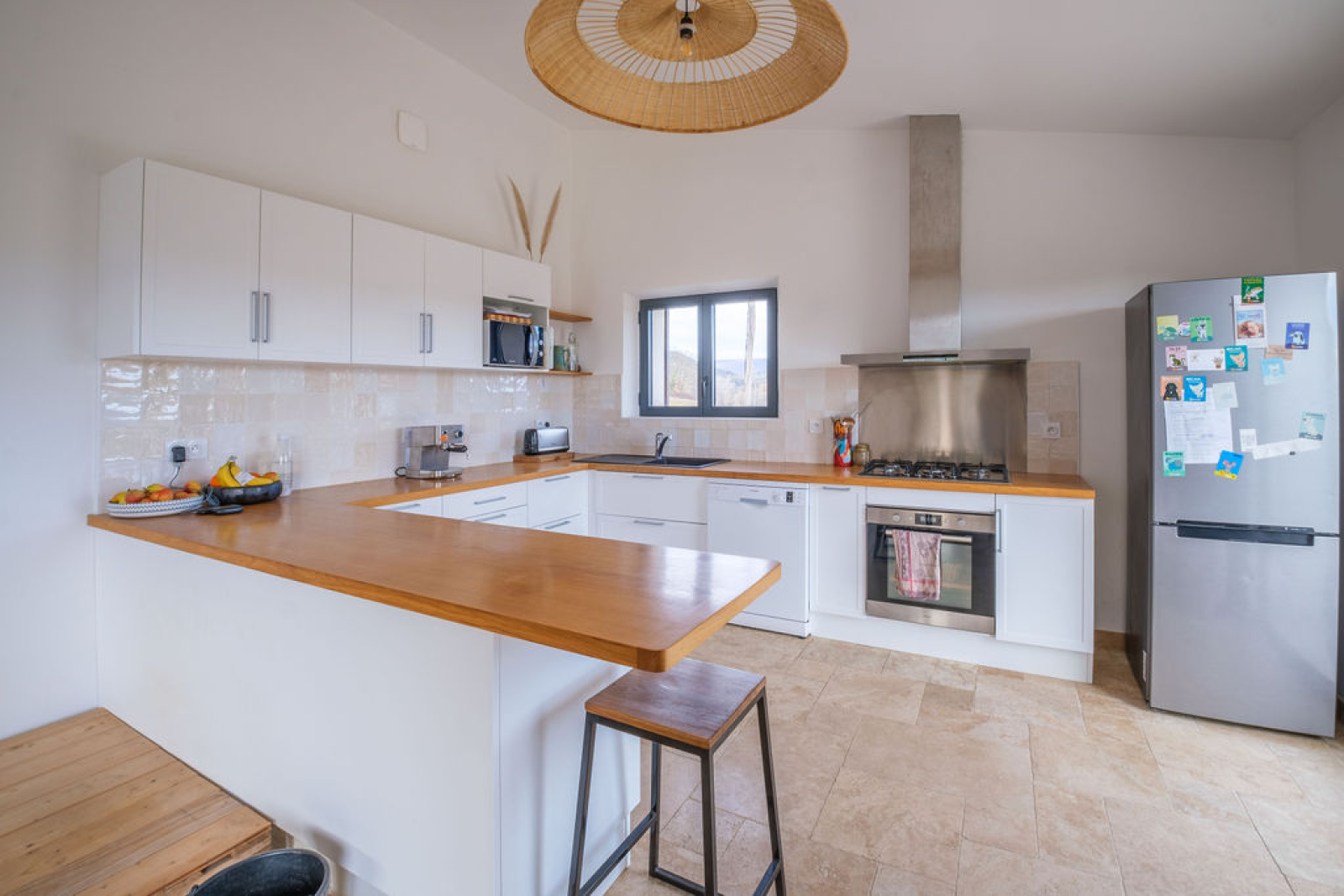 L'utilisation de matériaux de qualité ( terres cuites, boiseries, ) créent une athmosphère provençale et cosy . Le chauffage est assuré par un poêle à bois et des radiateurs performants ( la maison est classée D ) L 'isolation a été réalisée avec de la laine de bois . Un garage avec une porte automatique et un sous sol /cave complètent la maison .