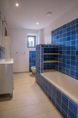 Les propriétaires ont rénové entièrement la maison en 2018-2022 , en créant un bel espace de vie de 54 m² comprenant une cuisine meublée et équipée, une salle à manger et un séjour lumineux . Un couloir dessert deux chambres et une suite ( chambre et salle d eau privative ) , une salle de bains wc
