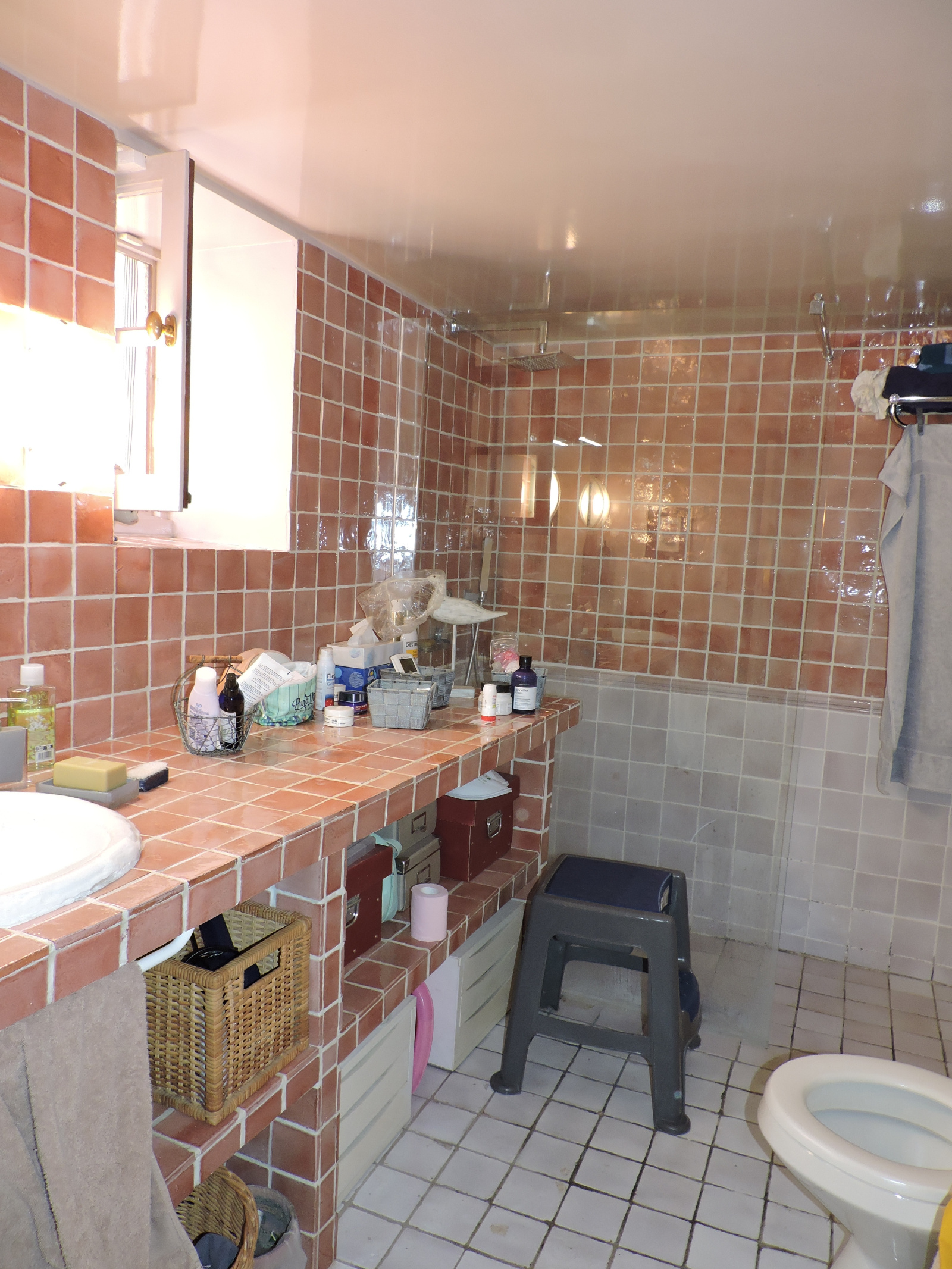En rez de chaussée : une chambre de 13 m² avec sa salle d'eau WC de 5 m² , son espace buanderie de 5 m² avec accès direct au jardin , cave à vins .