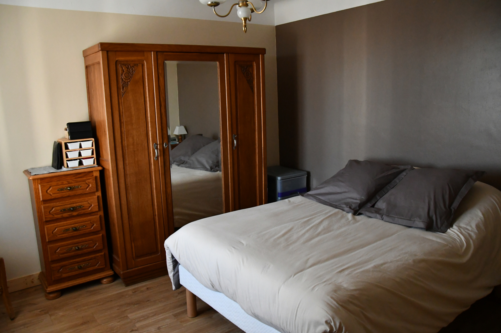 un escalier intérieur mène au rez de chaussée où nous trouvons 3 chambres, une salle d'eau et un wc indépenadnt.