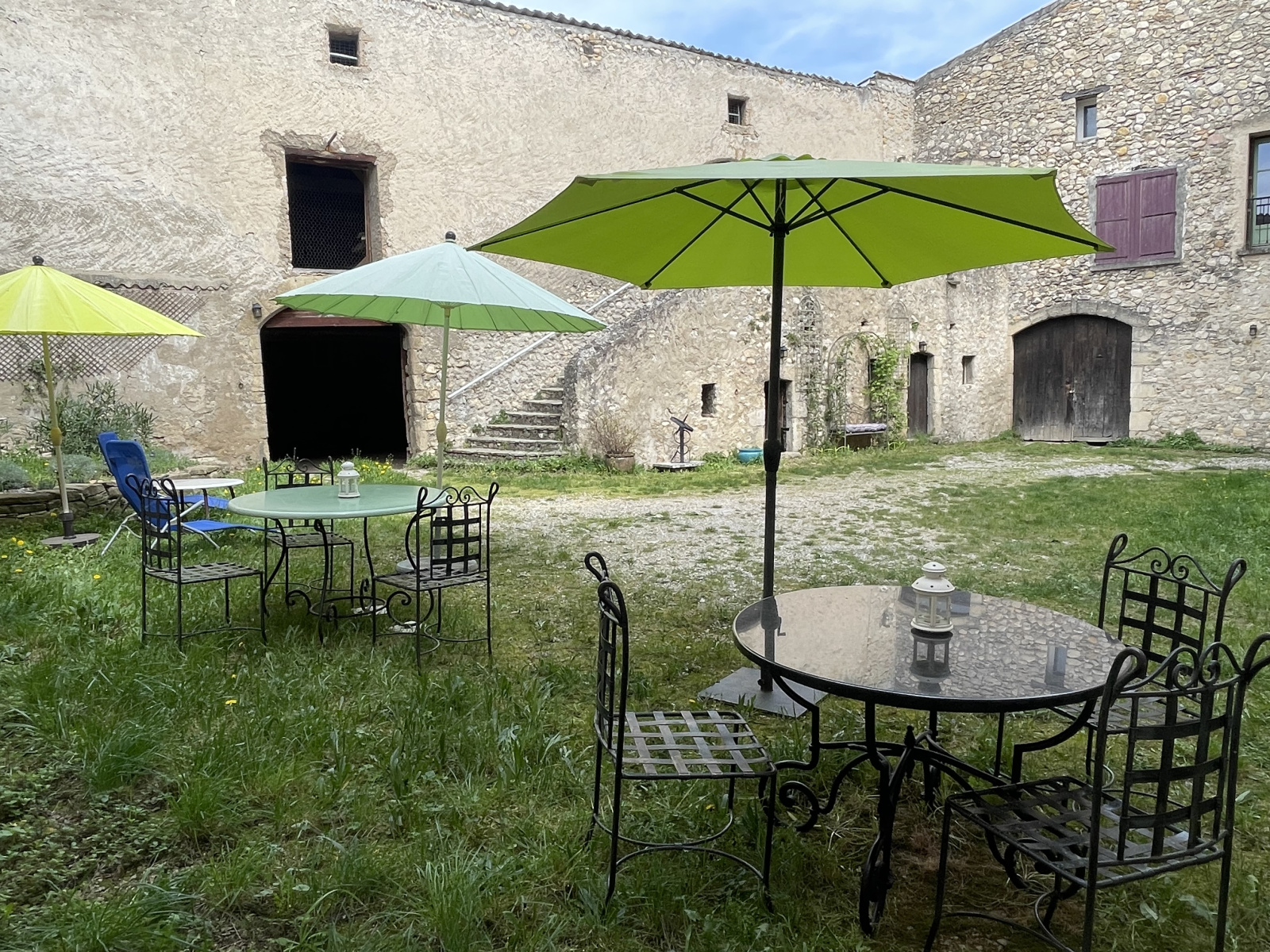 Une cour intérieure en partie commune , de 260 m² , sépare la bâtisse des anciennes écuries qui offrent près de 200 m² au sol .
