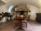 Il dispose d'une grande pièce de vie avec coin cuisine et d' une cheminée monumentale ainsi qu'une salle d 'eau . ce logement offre également une porte donnant directement sur la cour intérieure commune