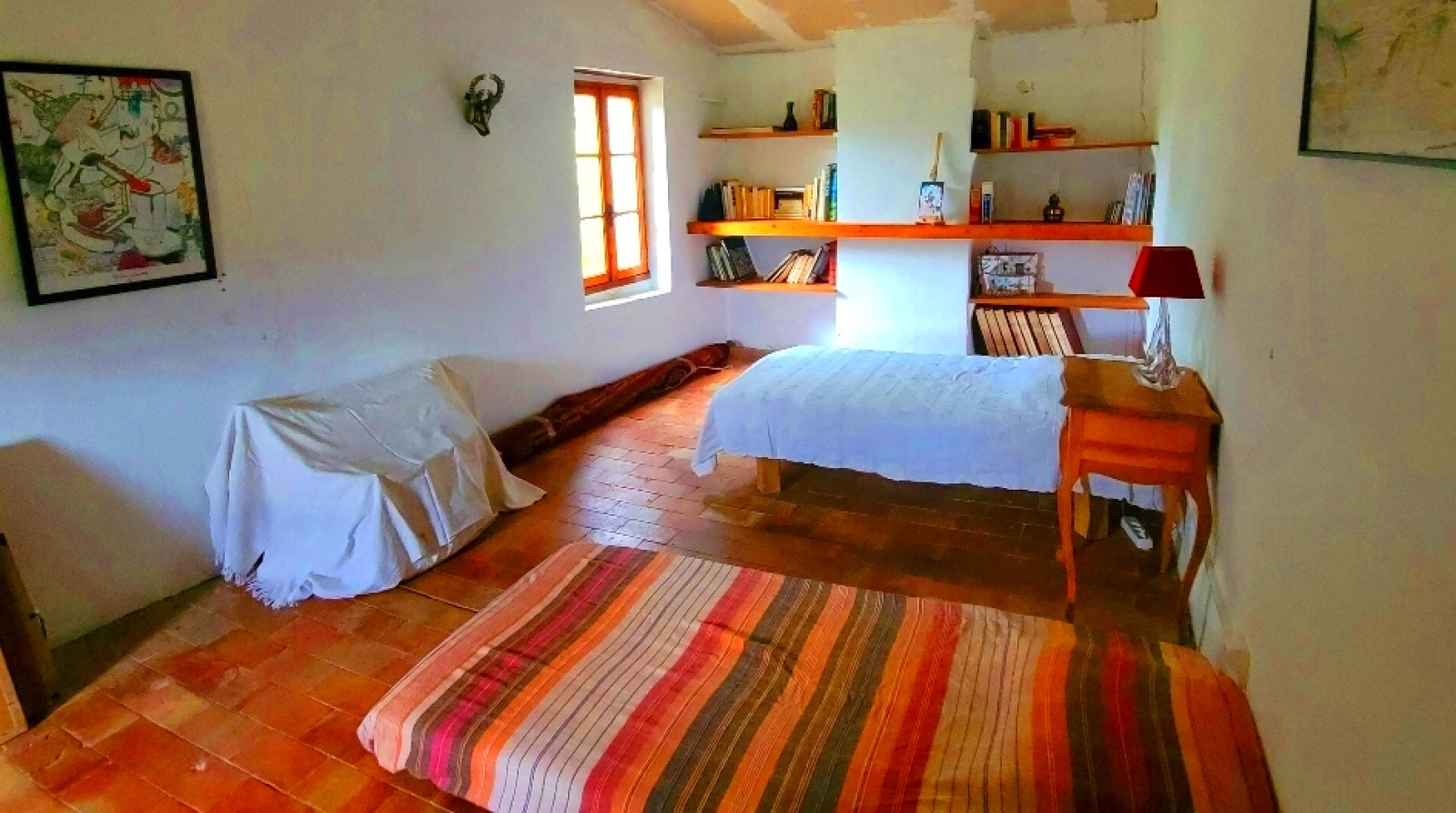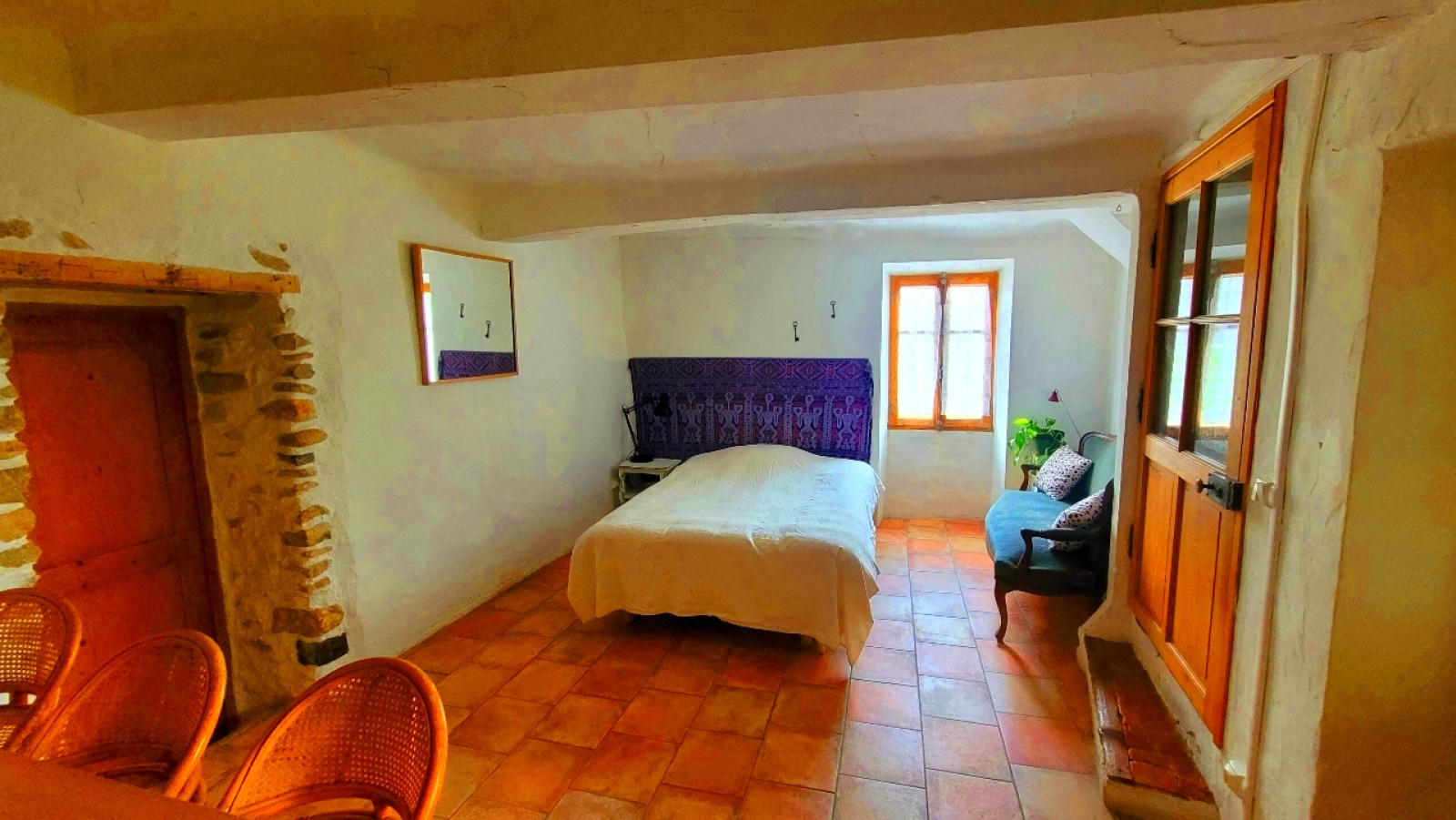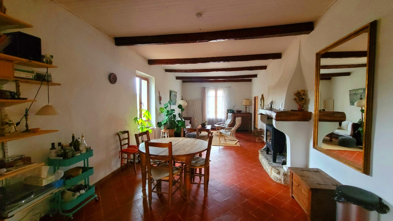 Matériaux anciens, poutres, terres cuites, ambiancent cette maison d'une douceur de vivre positive et relaxante