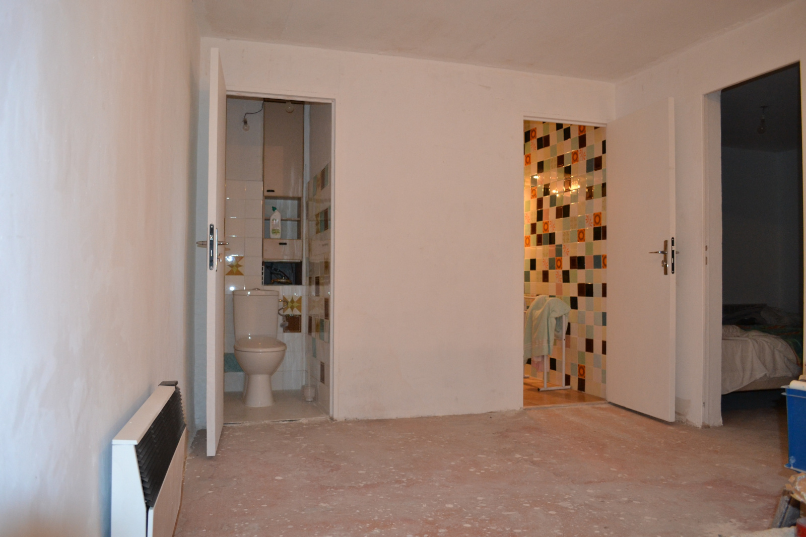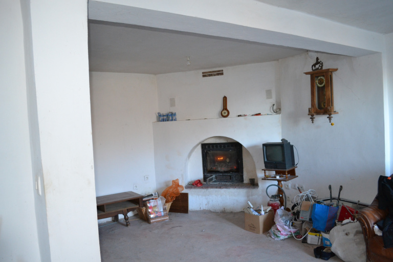 -Salon /sejour avec cheminée de 21 m² env, une cuisine de 10 m² env, un wc, donnant sur un jardin de 60m² env.