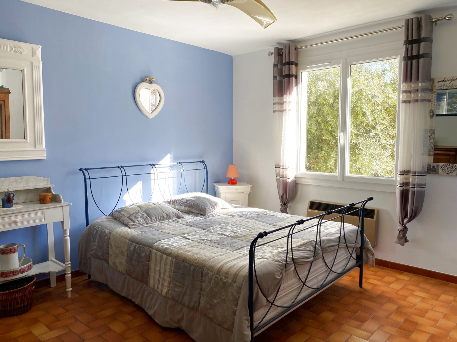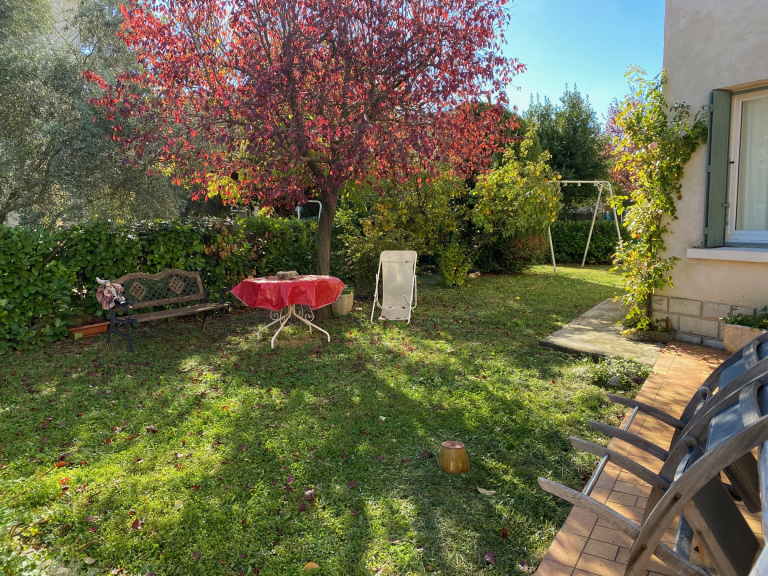 Le jardin est arboré d'oliviers et de plantes méditerrannéennes et fleuries , une haie entoure entièrement la parcelle fermée par un portail .