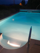 La piscine est chauffée par une pompe à chaleur et dispose d'une couverture sécurisée