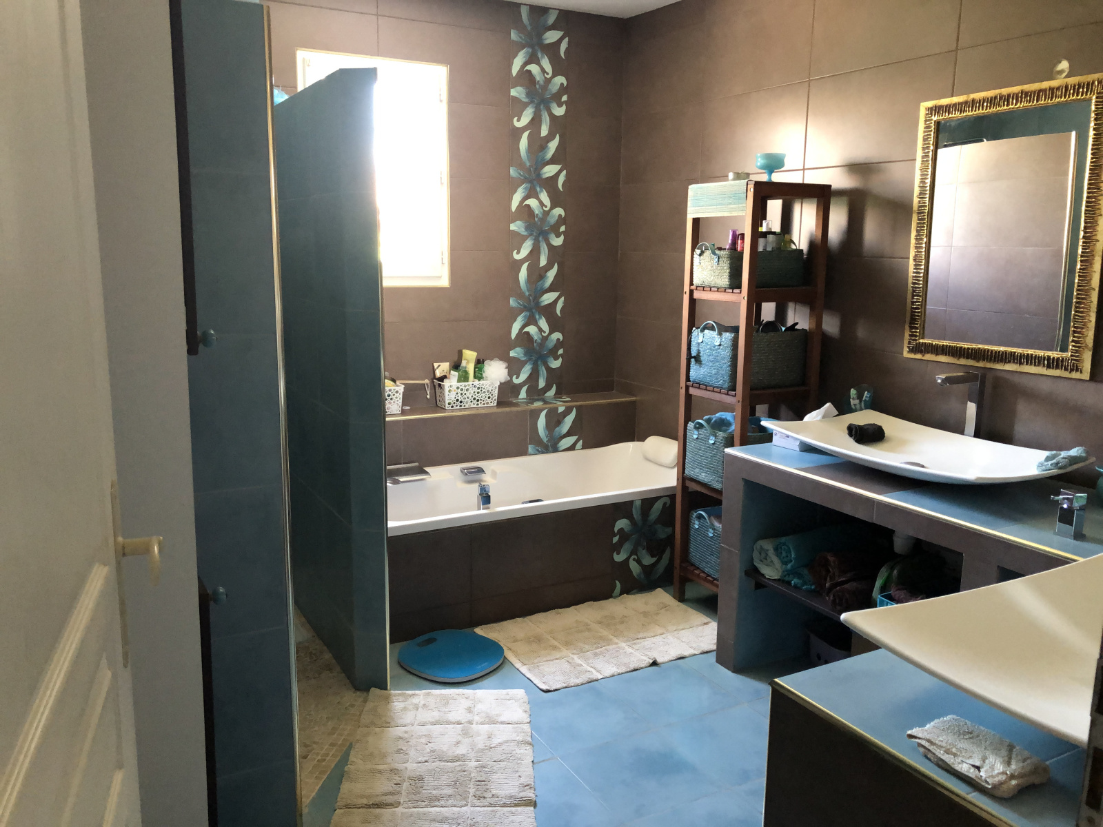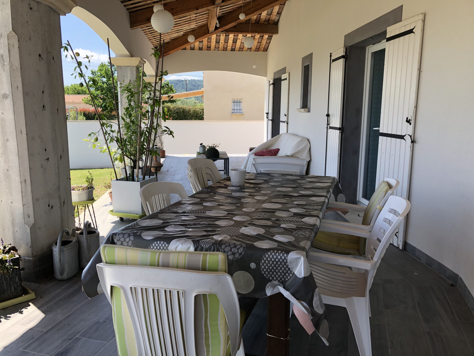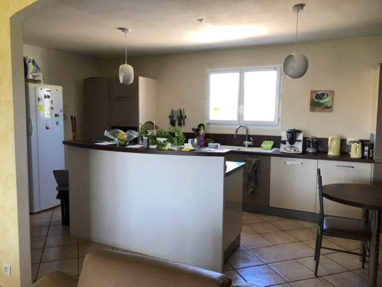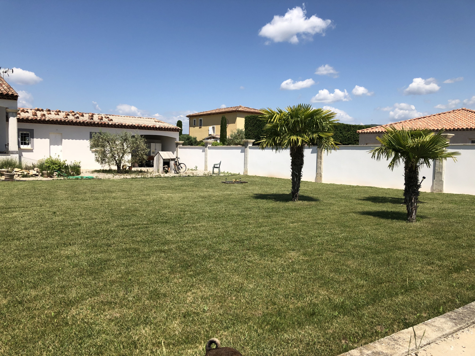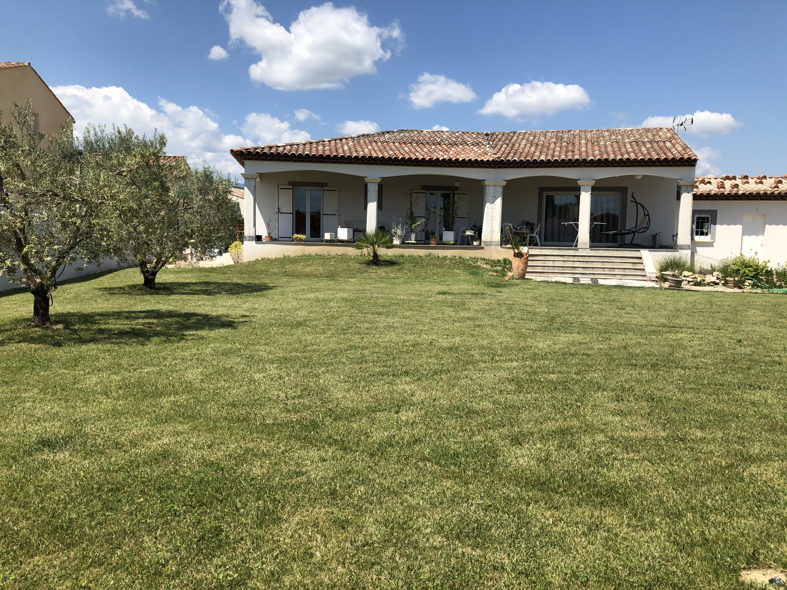 Exclusivité VENDUE proche Oraison et accès autoroute, JOLIE VILLA T5 DE 2008, 143 m² habitables DE PLAIN PIED sur 1500 m² de terrain arboré, clos et piscinable , auvent de 27m² (abri voiture) et garage de 56 m² (coin buanderie et cellier). Maison de maçon, belle prestation réalisée avec des matériaux de qualité (crépis du mois d'août 2019), elle se compose d'un hall d'entrée (2 penderies et un placard), d'une cuisine équipée de 20 m², ouverte sur une pièce de vie de 37 m² donnant sur la terrasse couverte de 66m² et le jardin exposés sud. On trouve ensuite une chambre de 17 m² avec penderie et salle d'eau privative (à terminer), 2 chambres de 13 m² avec placards, un bureau pouvant servir de chambre d'appoint, une salle de bain avec douche et baignoire, 2 w-c indépendants. La villa est équipée du chauffage par géothermie, d'un adoucisseur d'eau, menuiseries en PVC, portail électrique, arrosage automatique intégré avec eau du canal et programmable, vide-sanitaire de 80 cm, hauteur sous plafonds de 2,43 m. Sur le terrain, une plate-forme bétonnée de 60 m² a été conçue avec toutes les viabilités, possibilité de faire un studio (accès indépendant et stationnement privatif sur le terrain). Produit de qualité.