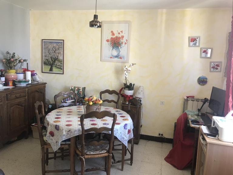 Un séjour. Un couloir avec placard dessert un wc séparé, une salle de bains avec baignoire sabot.